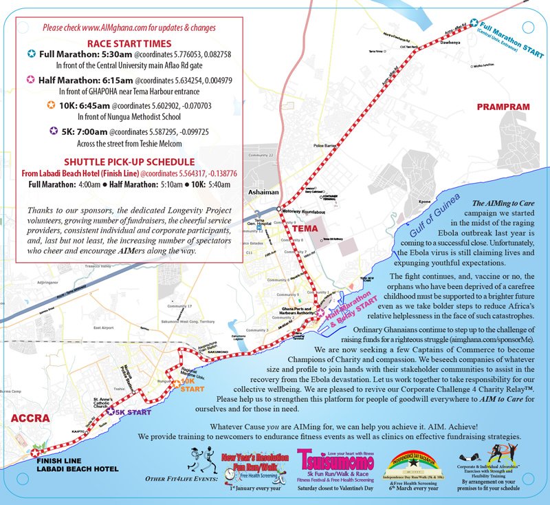 Most of you have probably learned that Accra now has 3 marathons in September! How now, you ask? When we launched the AIM back in early 2007, we announced that the event would be held on the last Sunday of every September. That very year, the Milo Marathon was held in July, then in October the following year. It gradually gravitated to September, not the best situation for local runners who now had to choose between the two endurance events or risk injury from overstrained muscles. Under these circumstances, we were nonplussed when yet a third “marathon” (which turned out to be a half marathon) was introduced this year to the Accra distance running calendar for September. And that is as much as we know of the “back story” of how there has come to be 3 long distance runs in Accra in the cool and lovely month of September.